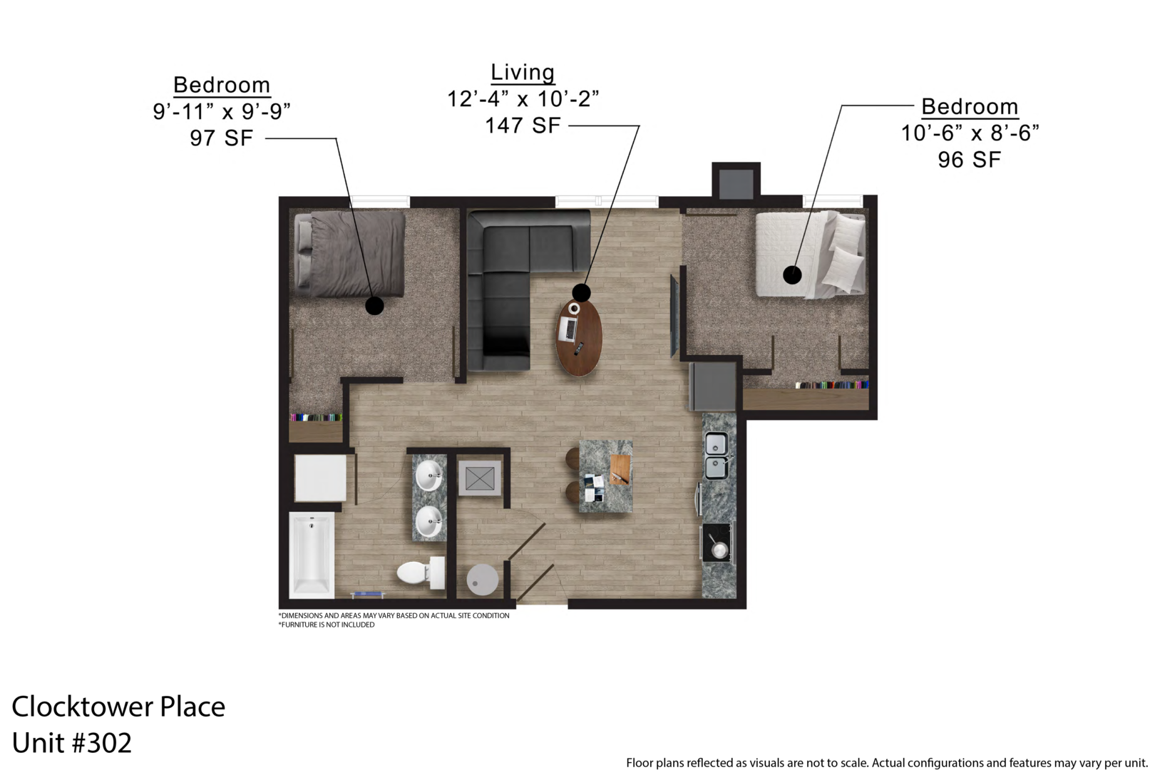 Welcome to Clocktower Place—modern living in a prime Ames location. This 2 bedroom, 1 bathroom apartment features a spacious, thoughtfully designed layout, high-end finishes, and includes a 55" TV for your enjoyment. Located near Iowa State University, local dining, and shopping, Clocktower Place offers the perfect blend of comfort and convenience.