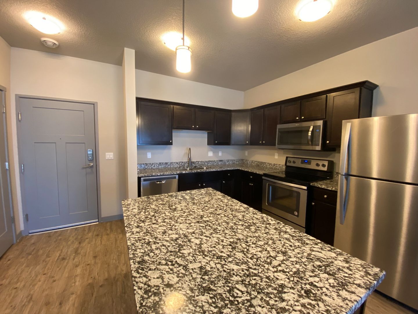 (Pictures are of a 1A layout at Mortensen Heights. They may not be of the exact unit but show the layout and finishes the unit has to offer.)