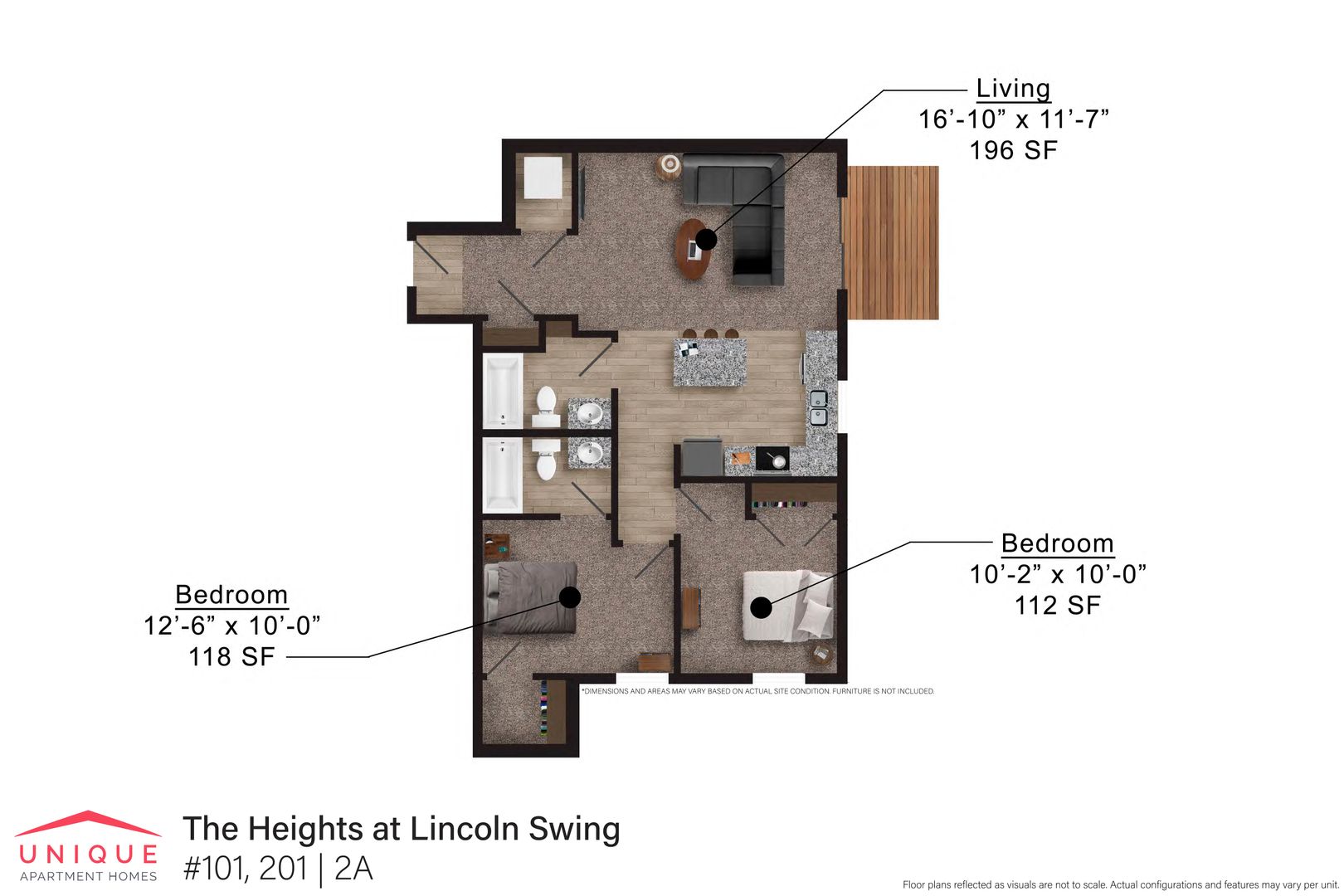2 Bed/2 Bath | The Heights at Lincoln Swing