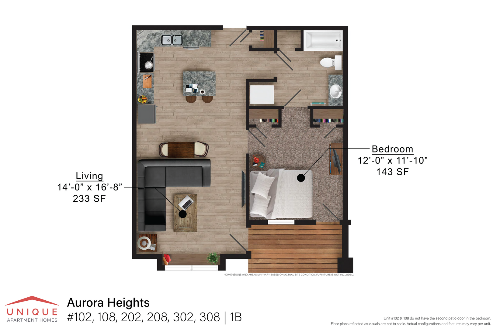 (Pictures are of a 1B layout at Aurora Heights. They may not be of the exact unit but show the layout and finishes the unit has to offer.)