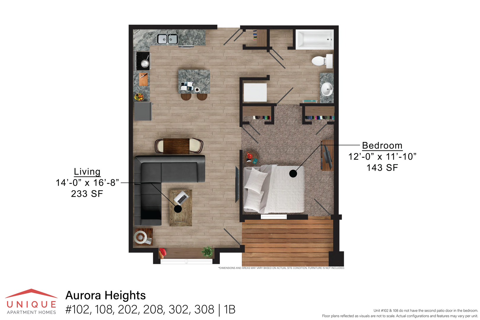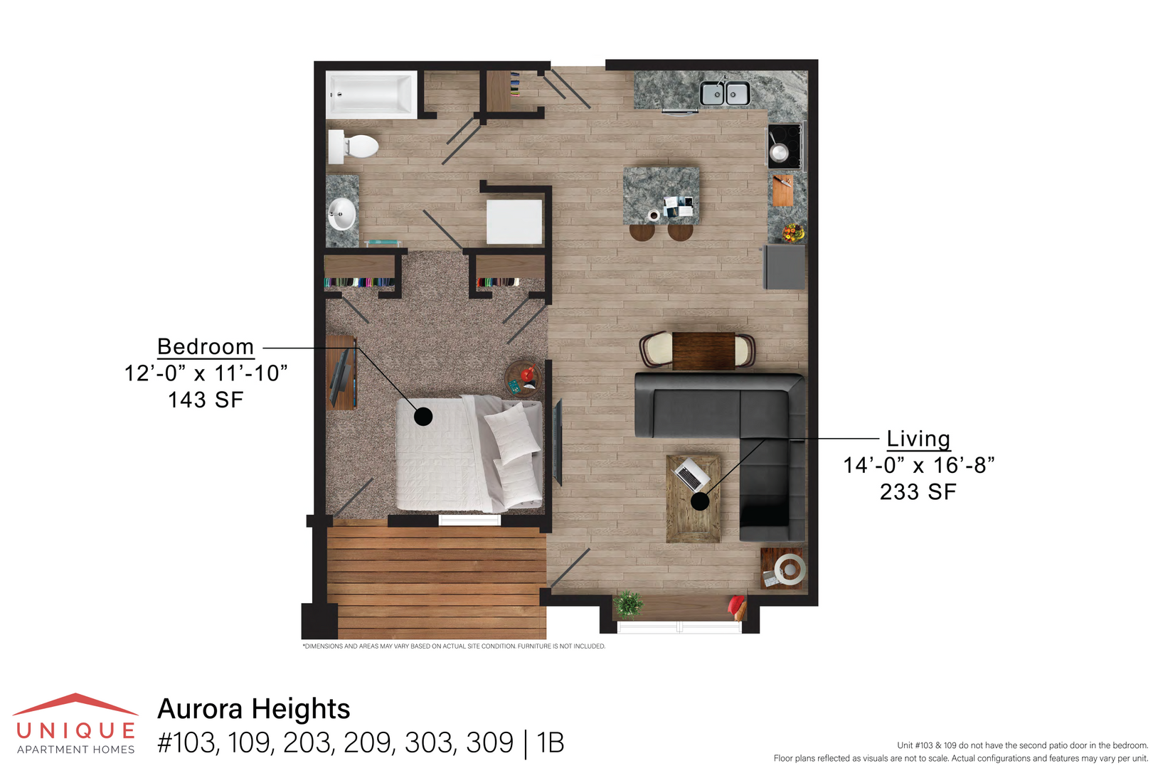 (Pictures are of a 1B layout at Aurora Heights. They may not be of the exact unit but show the layout and finishes the unit has to offer.)