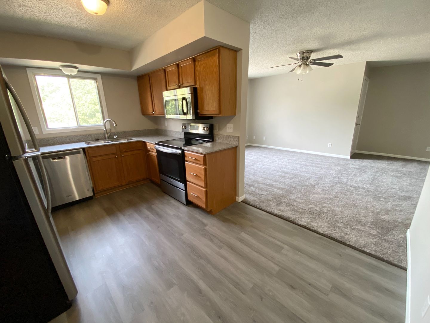 This unit includes internet, garbage, snow removal, lawn care, and one parking space with rent. Additional parking space and garage rental options are available on-site. Tenants are responsible for electricity and water through the City of Ames and gas through Alliant Energy.