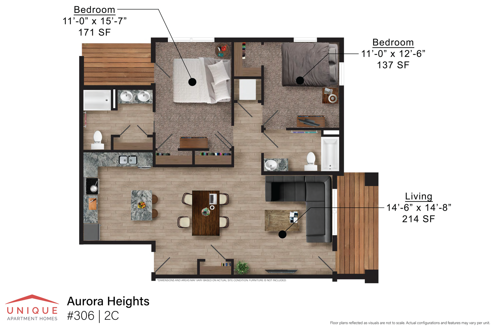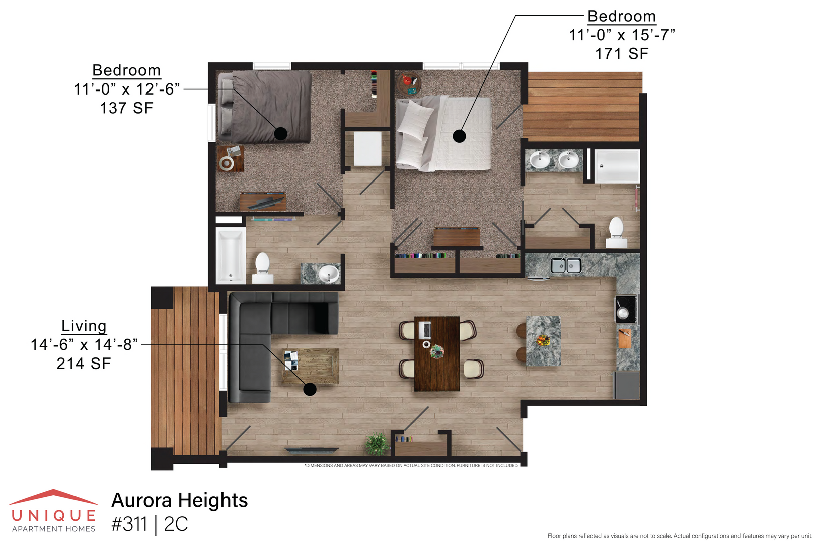 2 Bed/2 Bath (2C) | Aurora Heights